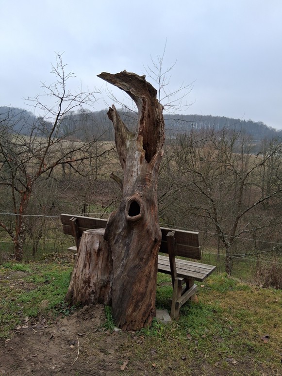 Mit großer Erwartung auf die XXL-Bank fuhren 21 Wanderer des Nieder-Ramstädter Odenwaldklubs mit dem Zug nach Bad König. Vom Bahnhof Zell aus liefen sie zunächst zum südlichen Ortsrand und überquerten auf der Brücke zum Friedhof die Bundesstraße, um von dort ansteigend um den Hohen Berg herum auf einem schönen Waldrandweg Richtung Langenbrombach zu laufen. Im Dorf wähnte man sich plötzlich im Thüringer Wald; hatte doch ein Bewohner vor seinem Haus einen Wegweiserstein des Rennsteiges aufgestellt. Am Steinberg führte die Markierung über die Striet hoch zur gigantischen XXL-Bank. Die Idee zu dieser sechs Meter langen und drei Meter hohen Bank ist einst einigen Brombachtaler Bürgern als Schnapsidee gekommen. Nach drei Jahren Vorbereitung und Planung wurde die Bank am 9. September 2018 eingeweiht und ist heute ein Ort, an dem man nicht nur die Beine, sondern auch die Seele baumeln lassen kann. Steht man vor diesem Bankungetüm, kommt man sich wie ein Zwerg vor! Heute ist sie ein Besuchermagnet und man kann von hier aus einen herrlichen Panoramablick von der Böllsteiner Höhe über die Spreng und ins Brombachtal genießen. Nach einer kurzen Verschnaufpause, einem kleinen Gipfelschluck und dem Naschen einiger Süßigkeiten gelangten die Wanderer über schlammige Wege und aufgeweichte Felder zur ehemaligen ESA-Bodenstation, die über ihre Parabolantennen einen direkten Draht zu den Satelliten im Weltall hatte. Sie lieferte Wetterdaten und war für den Empfang der Satellitenbilder von Meteosat zuständig. Und das hier bei uns mitten im Odenwald! Die Anlage wurde aber bereits vor Jahren aufgegeben und verfällt zusehends. Als „lost place“ ist sie heute Ziel einiger Abenteurer. Der Weiterweg führte dann an Obstbaumwiesen und Viehweiden vorbei in einem schönen Tal abwärts. Nach einer Wanderzeit von insgesamt zweieinhalb Stunden wurde wieder die Brücke an der B 45 erreicht und die Odenwaldklübler kehrten kurz darauf in Zell in ein Gasthaus zur verdienten Schlussrast ein. Hier konnten sich die Wanderer aufwärmen und den Wanderführern für diese schöne Tour danken, bevor man zwei Stunden später mit dem Zug zurück nach Mühltal fuhr.